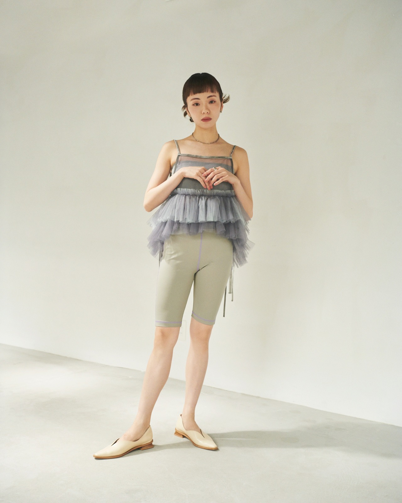Tシャツなどを用いたカジュアルコーデはもちろん、ジャケットとも相性抜群。また、バレエやヨガ、ピラティスなどのフィットネスウェアとしても。